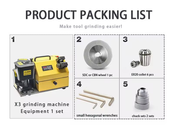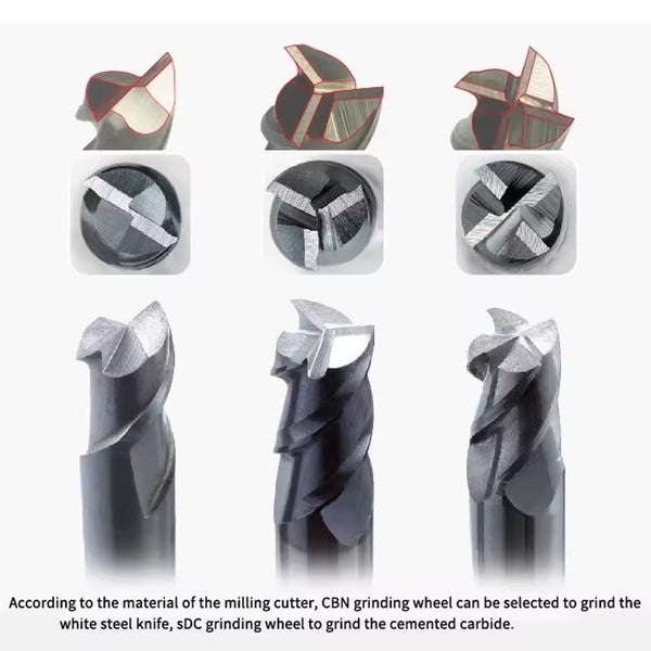 X3A grinding range 4-20mm, can be trimmed 2, 3, 4 edge end milling cutter end face, milling cutter with the center of the back Angle can be adjusted (0-5 degrees).